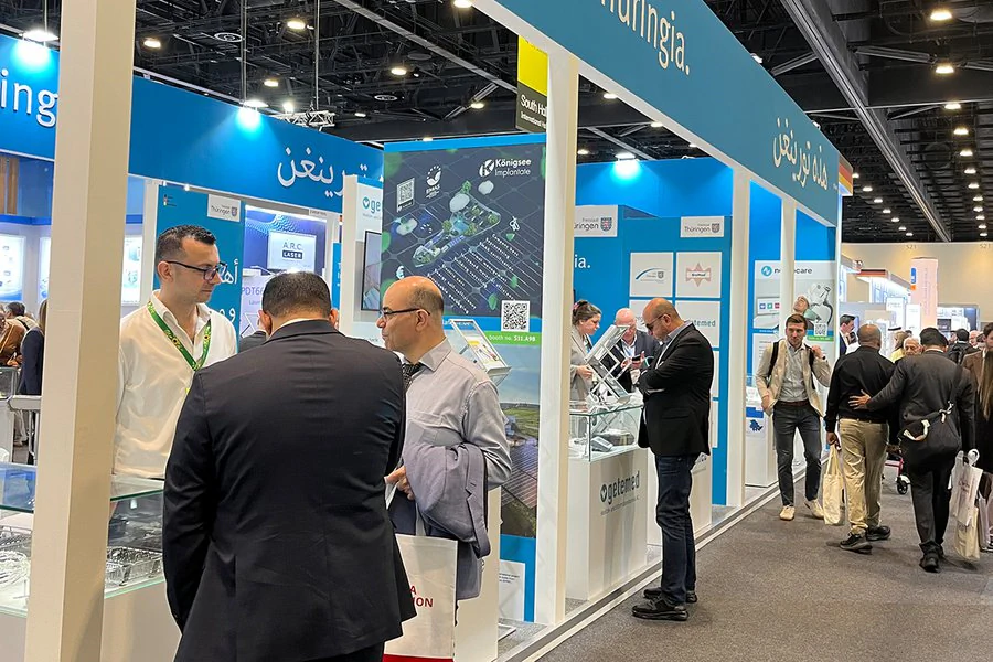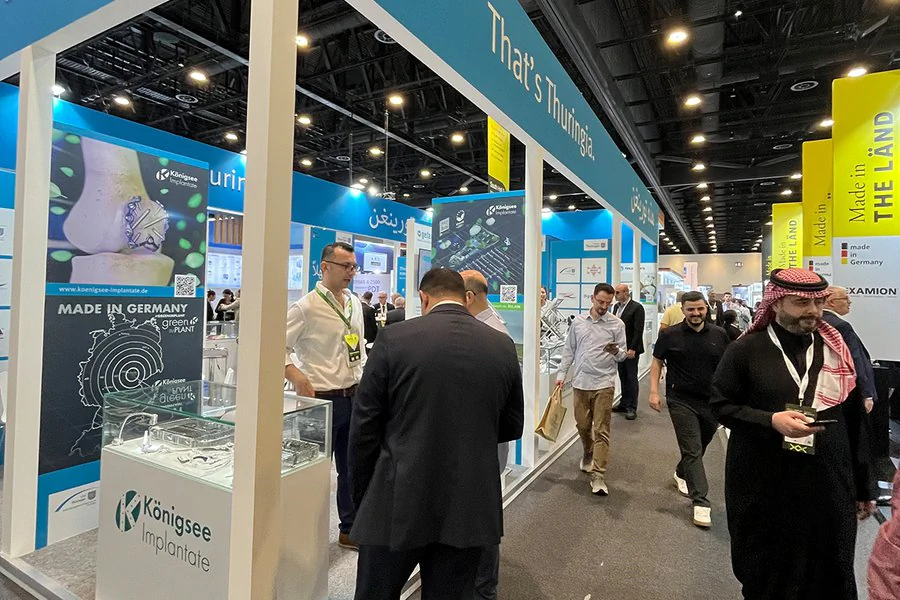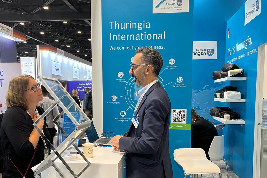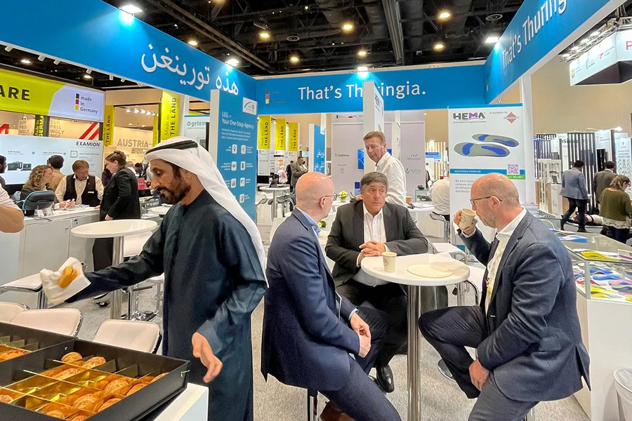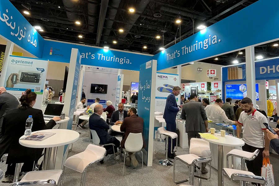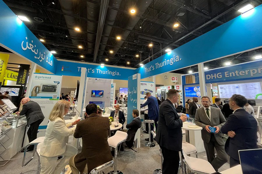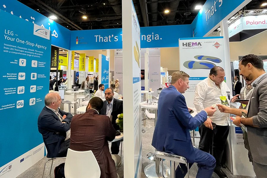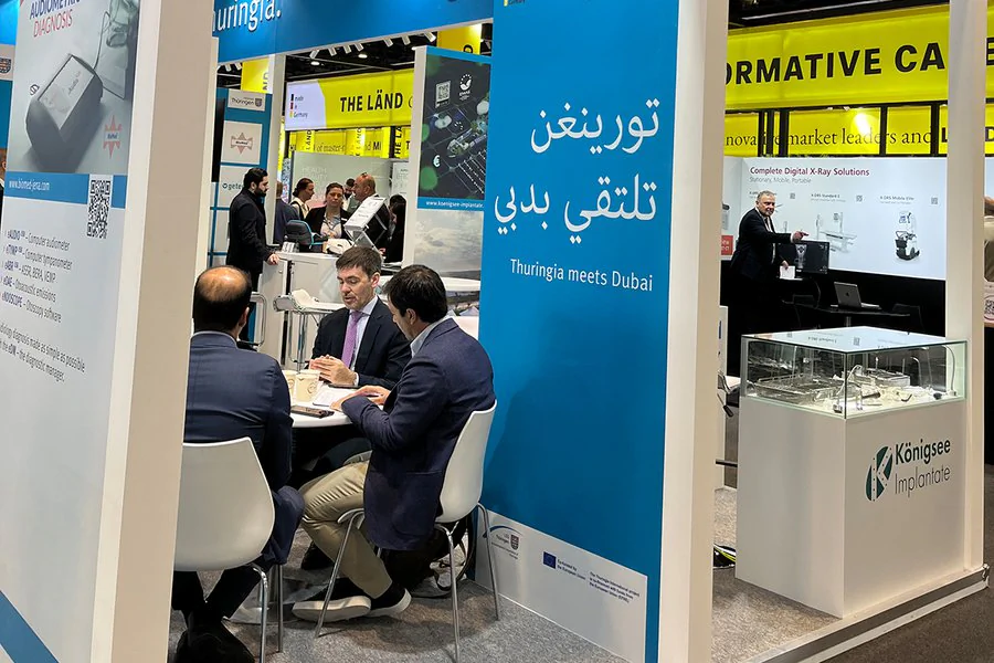 Neuer Name. Neuer Standort. Mehr Bandbreite: Als World Health Expo Dubai findet die einstige Arab Health im Jahr 2027 das zweite Mal im Dubai Exhibition Centre statt. Als weltweit führende Messe für Medizintechnik, Gesundheitstechnologien und digitale Gesundheitsanwendungen mit über 3.000 Ausstellern und mehr als 60.000 Fachbesuchern ist die WHX Dubai die ideale internationale Plattform für Thüringer Unternehmen, um vor allem neue Märkte im Nahen und Mittleren Osten für sich zu erschließen und den Technologietransfer zu beschleunigen. Thüringen präsentiert sich genau deshalb im Jahr 2027 bereits zum 14. Mal auf der Weltleitmesse der Gesundheitsbranche in Dubai. Wie? – Mit einem weithin sichtbaren Thüringer Gemeinschafsstand!